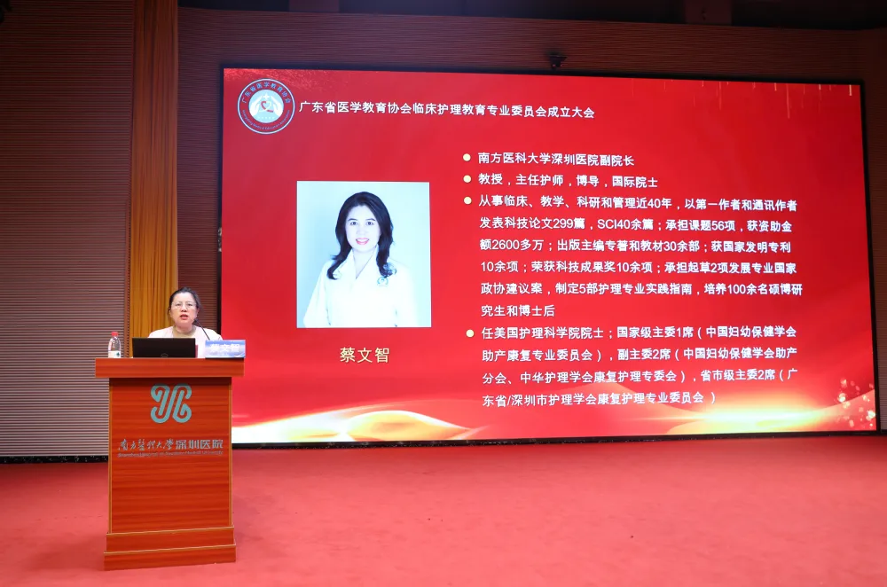 作为聚焦临床护理教育的省级专委会,其成立标志着广东护理教育从各自为战迈向协同发展新阶段。蔡文智副院长在致辞中强调,临床护理教育是护理事业发展的根基,也是提升护理质量、保障患者安全的核心支撑。她对专委会提出三点期望:推动智能化、数字化教学创新;强化“双师型”师资队伍建设;促进区域资源共享与均衡发展。