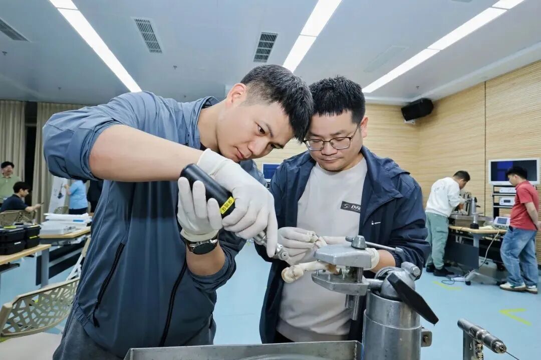 学习班期间,学员们在专家指导下亲自操作模型及动物骨,进一步加深了对手术步骤、器械使用及操作要点的理解。现场互动频繁,学习氛围浓厚。