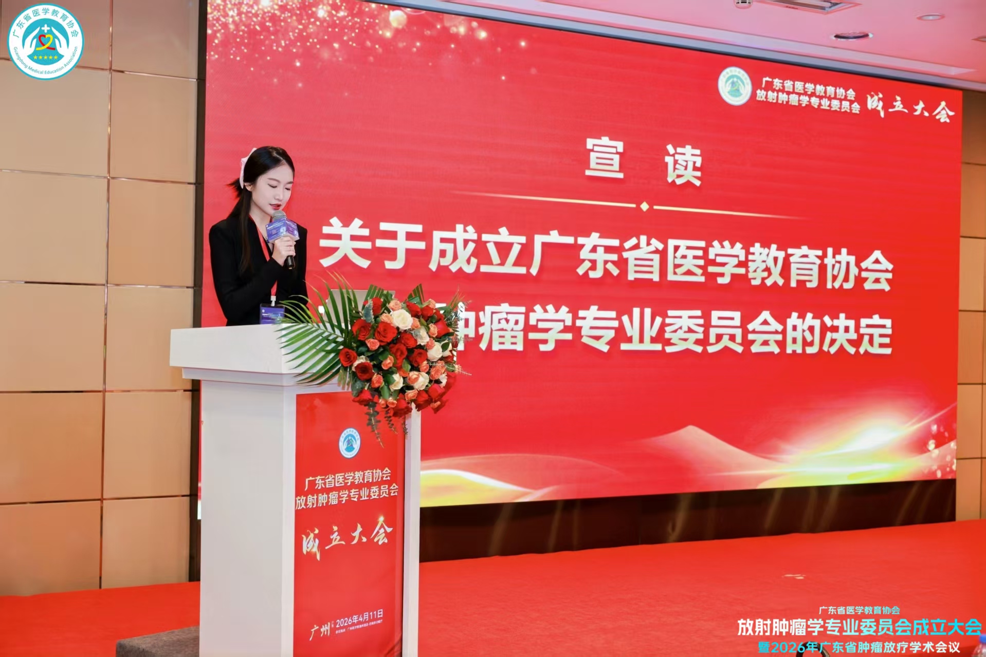 会议伊始,副秘书长于淼宣读《关于成立广东省医学教育协会放射肿瘤学专业委员会的决定》。
