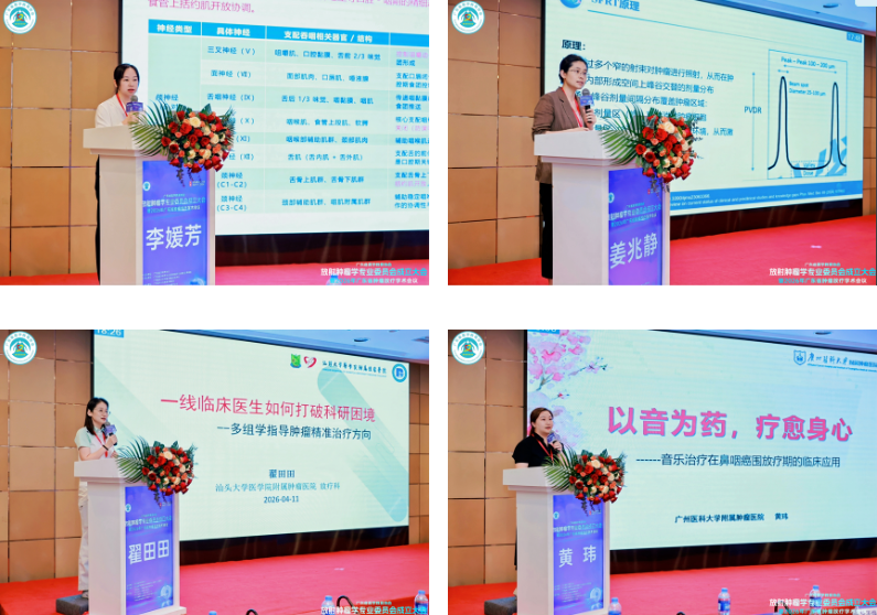 广州医科大学附属肿瘤医院李媛芳教授分享护理视角下鼻咽癌放疗患者吞咽功能保护策略,南方医科大学珠江医院姜兆静教授介绍晶格放疗研究进展,汕头大学医学院附属肿瘤医院翟田田教授分享临床医生科研破局思路,广州医科大学附属肿瘤医院黄玮教授介绍音乐治疗在肿瘤患者中的应用,多位专家担任点评嘉宾,内容兼具实用性与创新性。