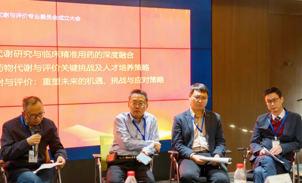 在专题讨论环节,南方医科大学第五附属医院郭丹主任、南方医科大学坪山医院(深圳市坪山区人民医院)冯光军主任、南方医科大学南方医院宿爱山教授及深圳技术大学林海树教授围绕“药物代谢研究与临床精准用药融合”、“新药研发挑战与人才培养”、“AI技术在药物评价中的机遇挑战”等议题展开深入交流,一致认为需加强临床与基础研究联动,优化药学教育体系,善用AI等新技术,推动学科跨越式发展。