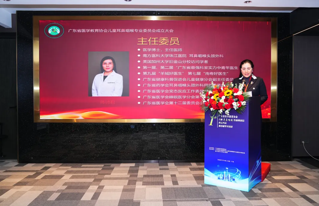 广东省医学教育协会儿童耳鼻咽喉专业委员会首届学术会议结束后,南方医科大学珠江医院主任医师、医学博士陈帅君进行了会议总结,并宣布广东省医学教育协会儿童耳鼻咽喉专业委员会成立大会开始。